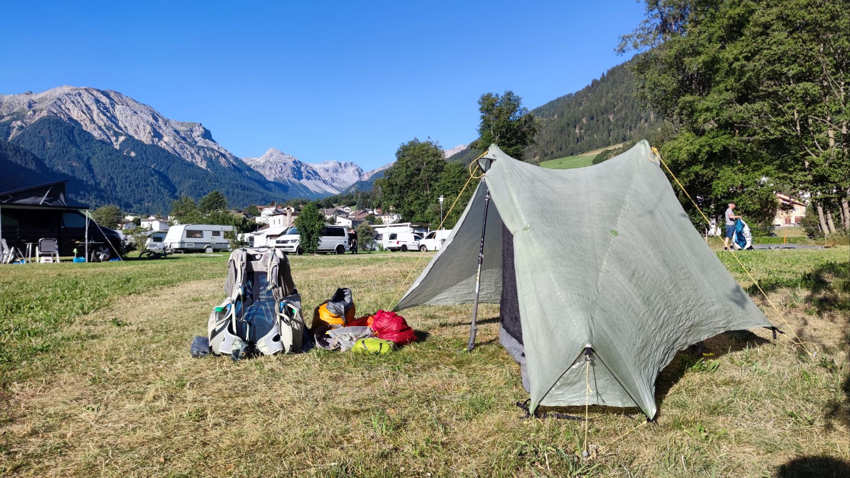 Abends nehme ich das Postauto zurück ins Münstertal (wobei ich den Anschluss verpasse und stöppeln muss, aber das klappt wunderbar). Dort steht bald mein Zelt auf dem Campingplatz Mulegn - ab morgen geht's weiter Richtung Zernez.