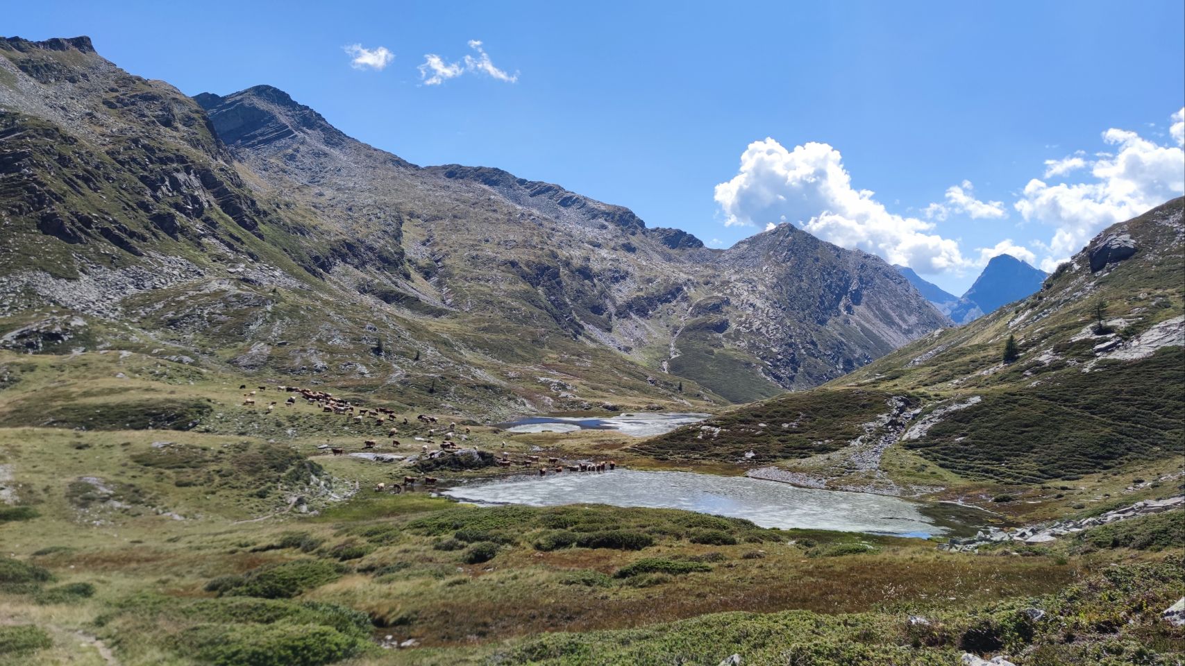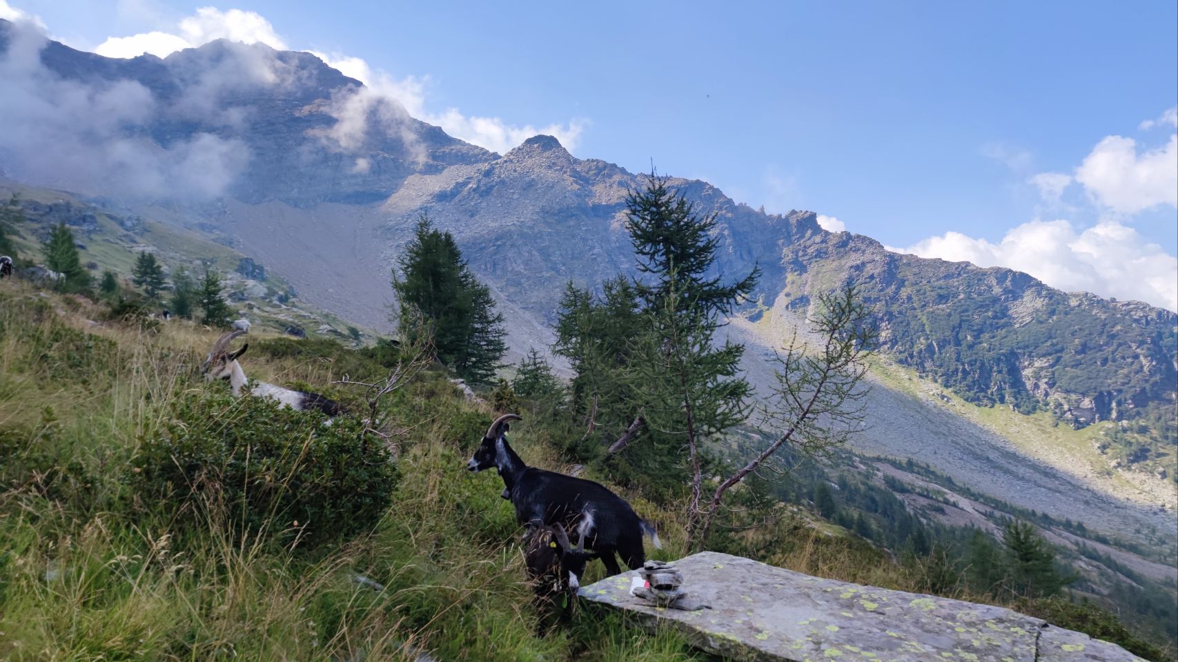 Auch an ein paar Herdenschutzhunden muss ich noch vorbei, die sind aber zum Glück friedlich. Kurz vor sechs dann erreiche ich endlich die Hütte, eine eiskalte Dusche und ein Quöllfrisch wecken die Lebensgeister. Die Hüttenwarte machen Musik vor dem Essen, zum Znacht gibt's ein Mix aus Pizzocheri und Älplermaggronen. Lecker! Ich unterhalte mich bestens mit meinen Tischnachbarn. Unter anderem sitzt ein Hirte bei mir am Tisch, der von den Problemen der Digitalisierung und Verbürokratisierung der Schafhirten erzählt. Krass, aber auch interessant. Doch leider fallen mir fast die Augen zu und ich schlafe trotz Lärm aus der Hüttenstube und Hitze im Schlafsaal bald ein. Rifugio Pian Grand - Capanna Buffalora, 23 km