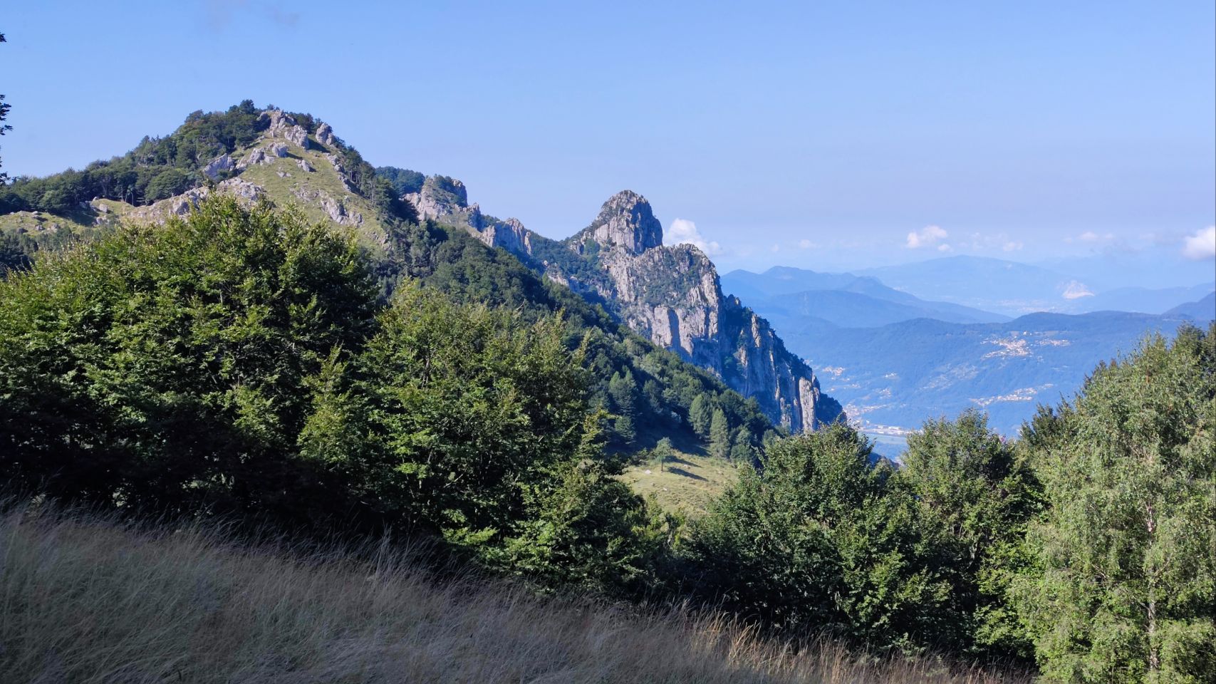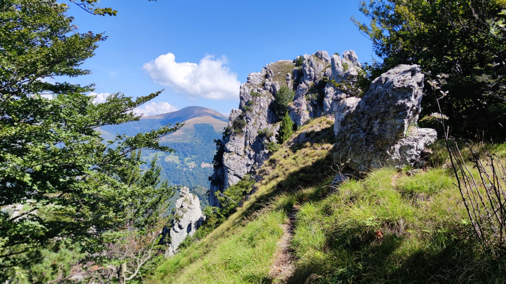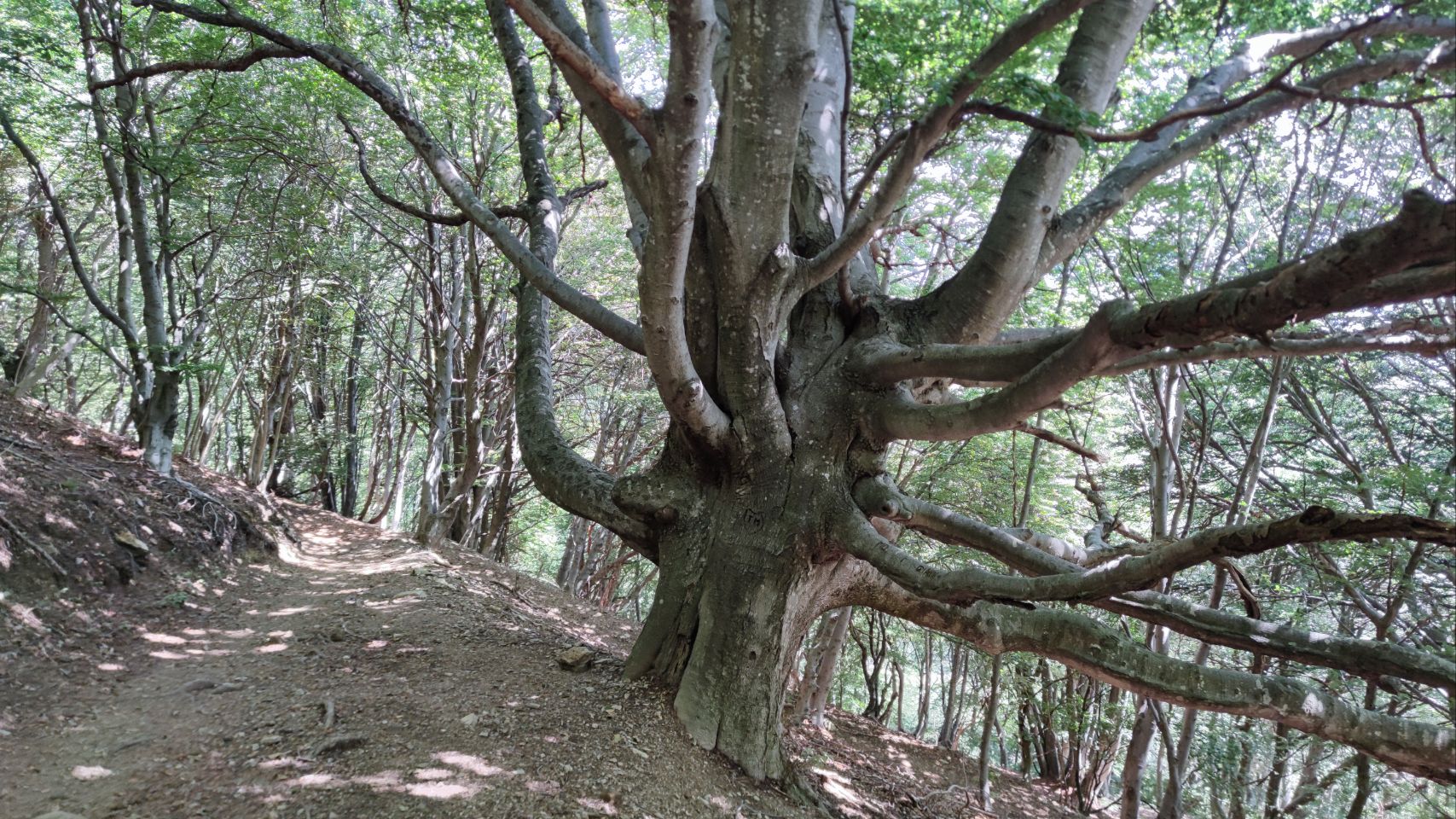 Bis zur Pairolo-Hütte geht es flott voran, ich kann endlich ein bisschen laufen, ohne ständig auf die Füsse zu schauen oder heftig zu schwitzen. Danach führt der Weg jedoch durch die Denti de la Vecchia - wunderschöne Felszähne auf dem Grat. Der Weg ist spektakulär, aber auch wieder anstrengend und erfordert ein bisschen Konzentration. Hübsche Alpenveilchen säumen den abenteuerlichen Weg. Man hat hier viele Optionen: meistens gibt es einen Weg oben über die Krete, links auf der italienischen Seite oder rechts auf der Schweizer Seite vorbei. Ich lasse ein paar Gipfel aus und wandere heute lieber durch urchige Buchenwälder.