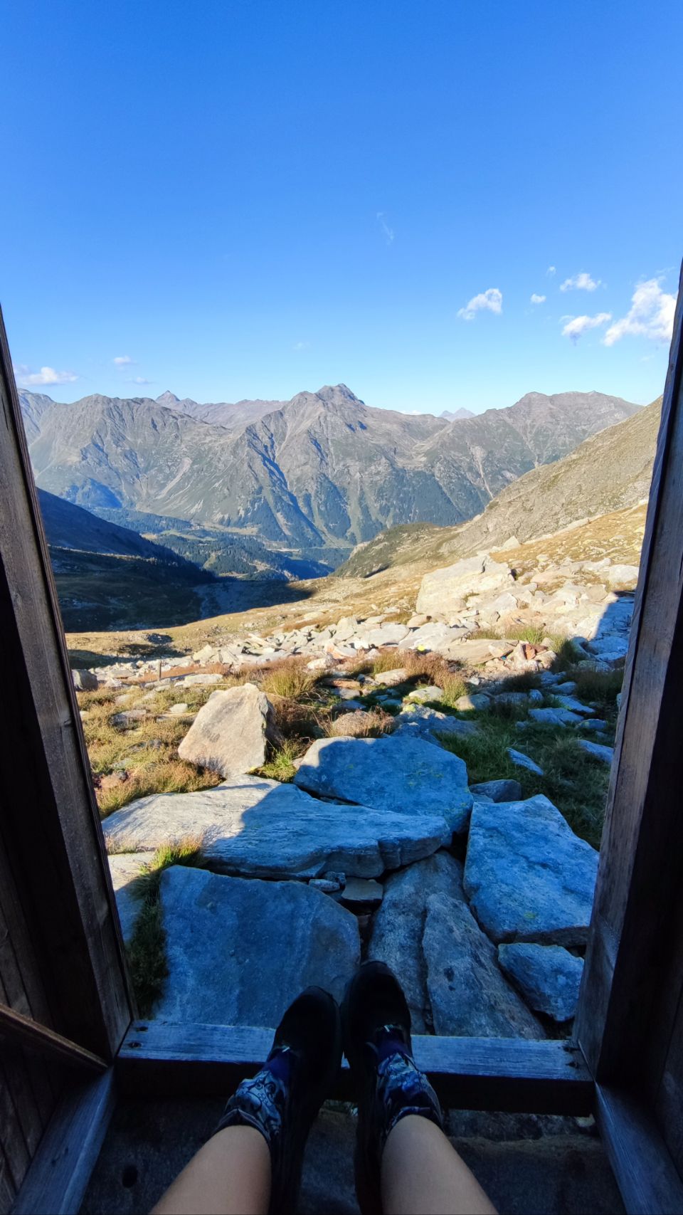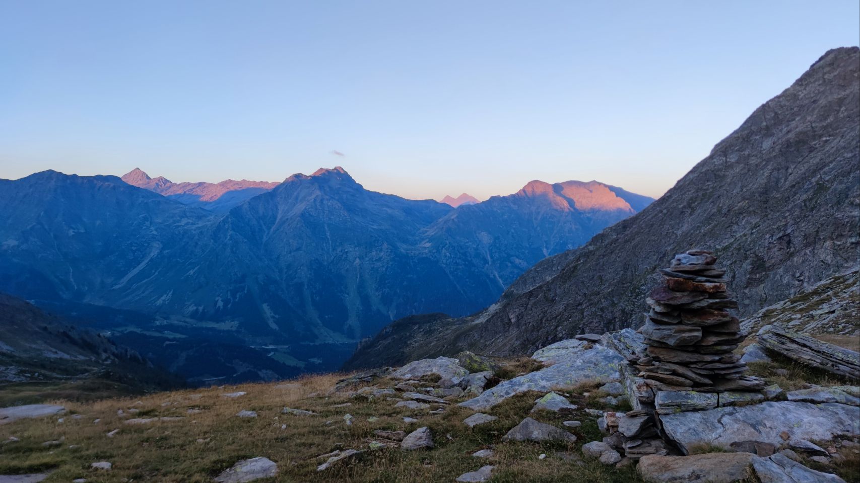 10. August 2022. Der Wecker klingelt früh, denn die nächste Etappe zur Buffalora Hütte sei lang, steht im Rifugio (und auch auf dem Wegweiser). Aus dem Tal wabert der Nebel hoch, aber die Sonne drückt ein bisschen durch. Ich muss dann doch noch die schöne Morgenstimmung vor der Hütte geniessen, und komme erst um halb acht los.