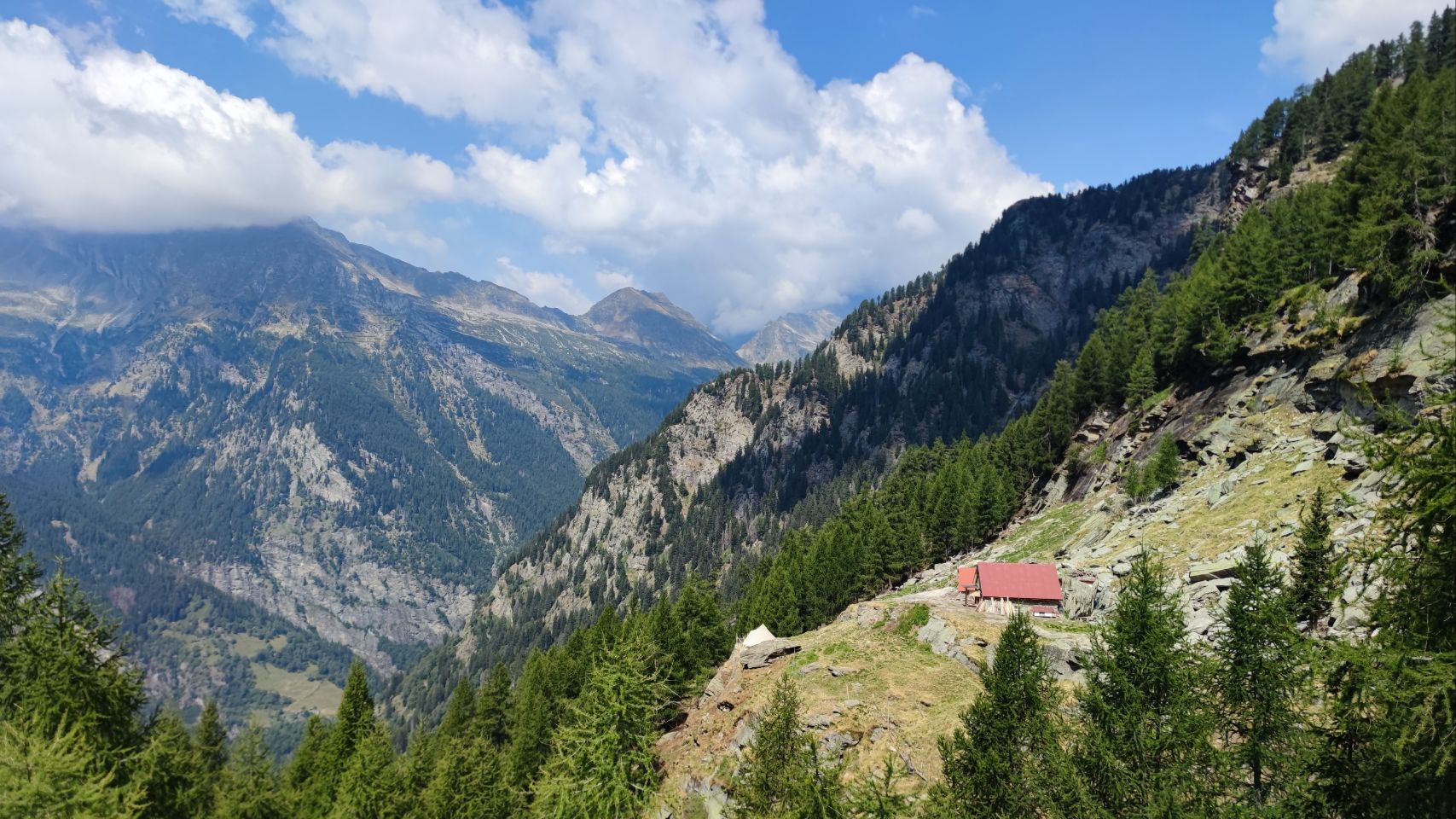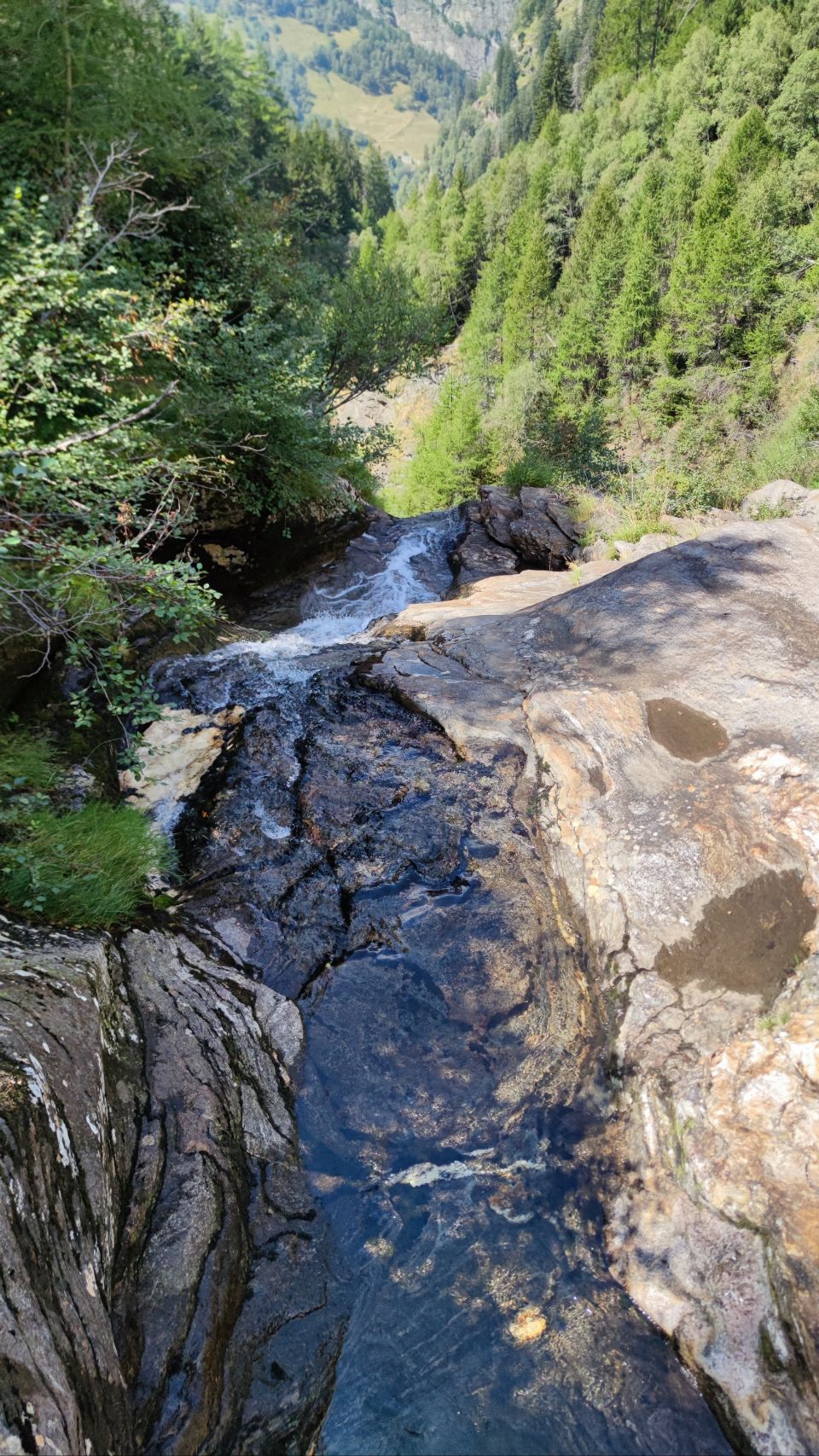 Es ist mittlerweile fast Mittag, als ich im Val Colla loslaufe, und dementsprechend heiss. Glücklicherweise führt der Weg zur Hütte grösstenteils durch den Wald, wo es angenehm kühl und schattig ist.