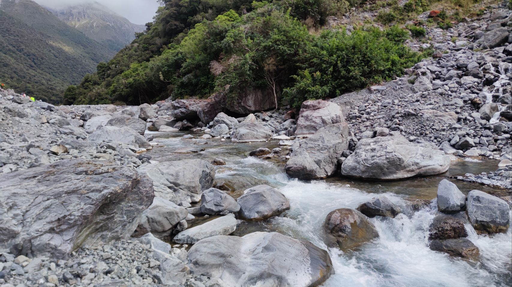 Boulder werden definitiv grösser, der Deception River ist nun ein Wildbach, und